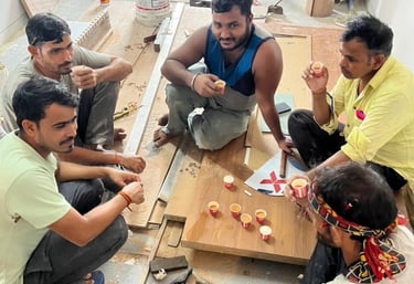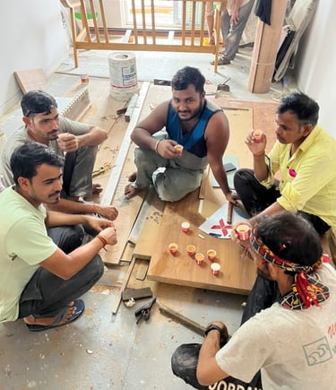 Based in Mumbai, we create thoughtfully designed interiors for homes and offices, brought to life by a dedicated team of craftsmen — from masons and carpenters to painters — who travel from across India to contribute their expertise. Every detail, finish, and timeline is carefully managed, ensuring that each space reflects both the design vision and the artistry behind it.